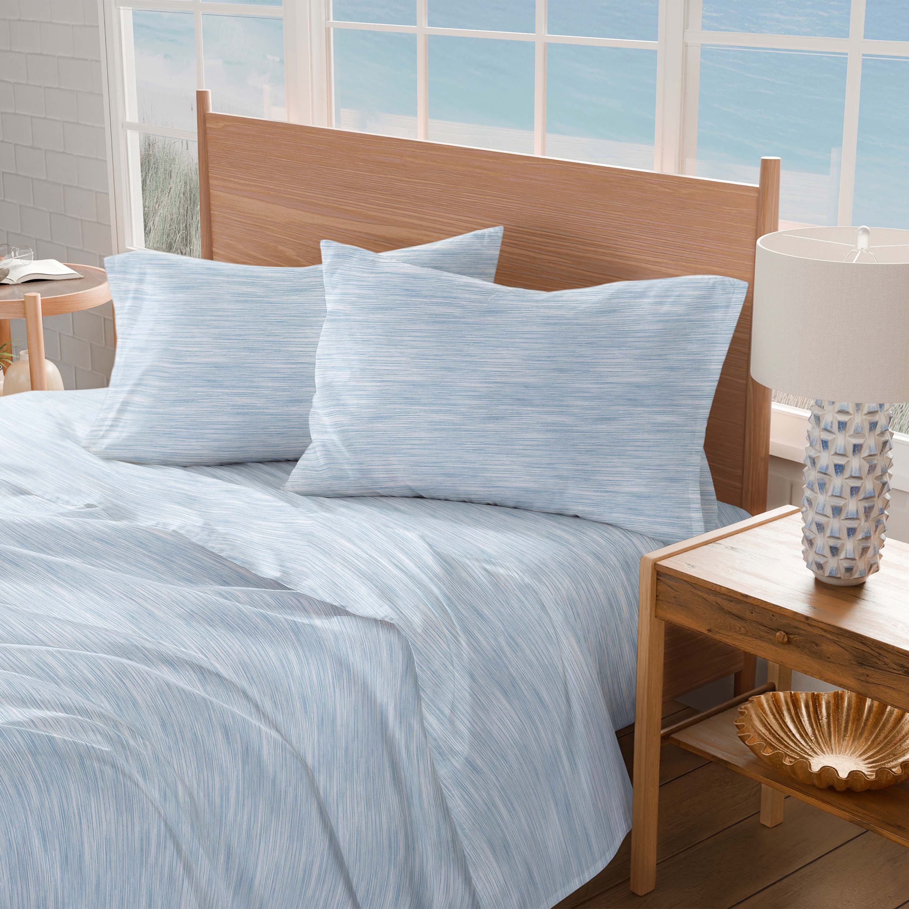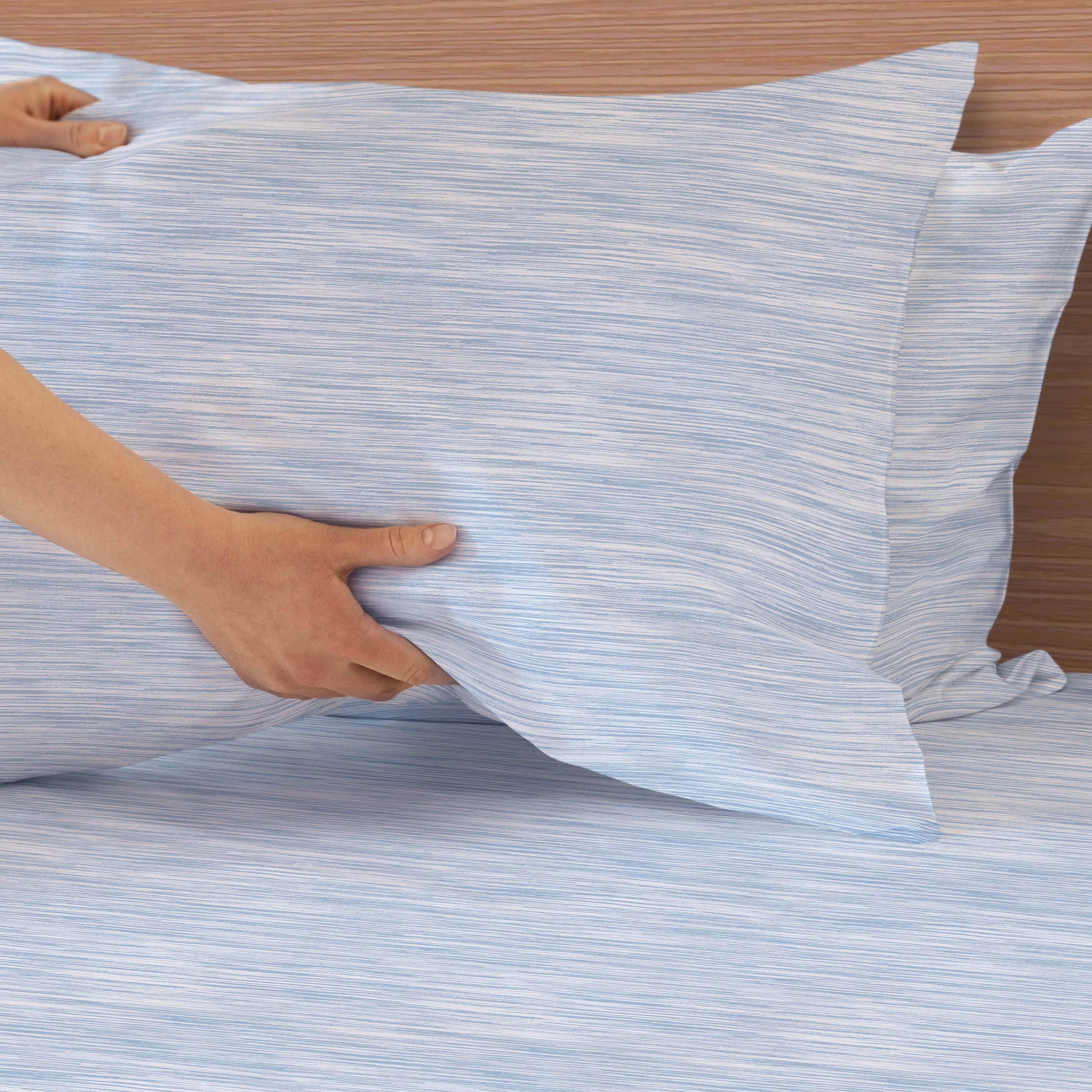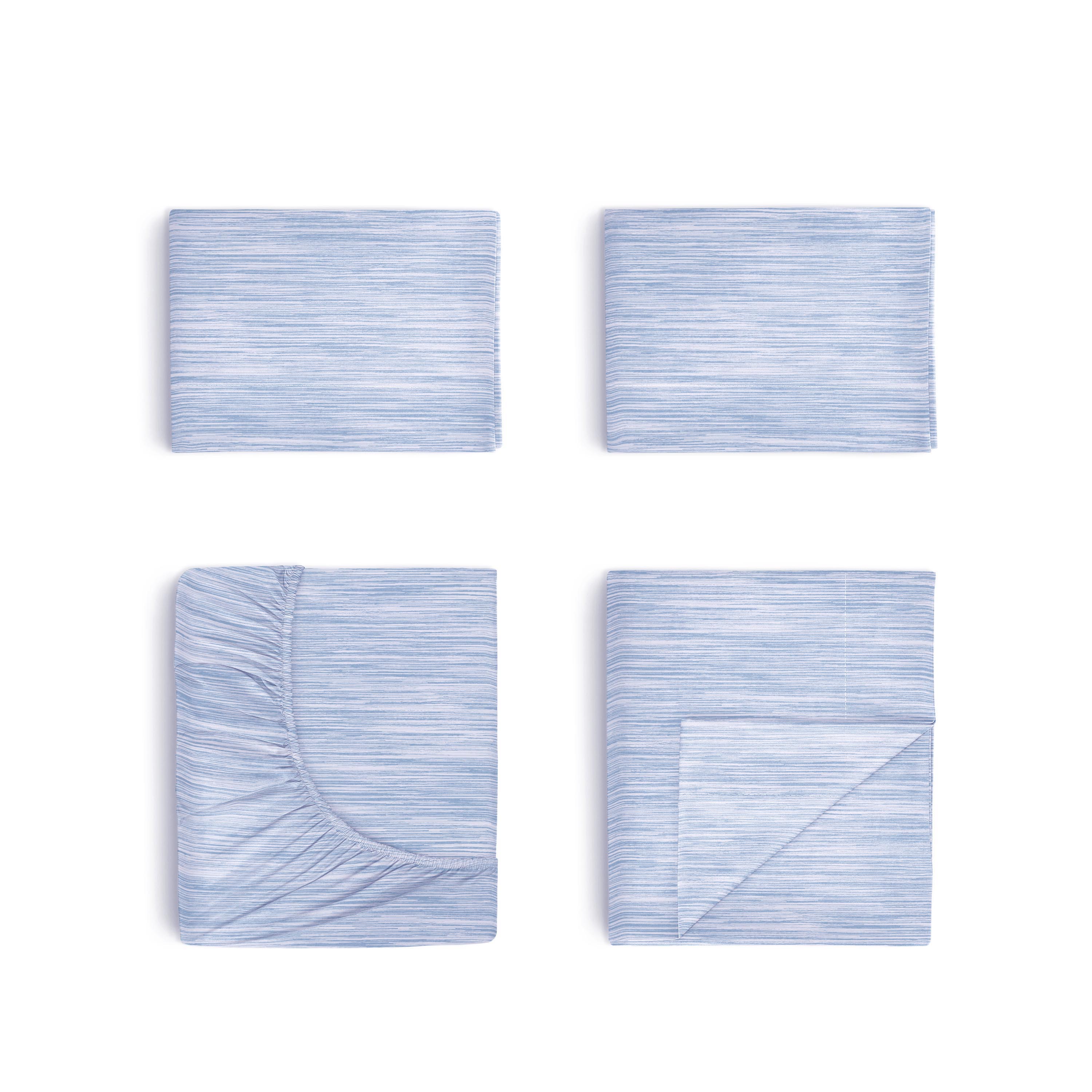 • (1) Twin Flat Sheet: 70”W x 90”L; (1) Twin Fitted Sheet: 39”W x 75”L; (1) Standard Pillowcase: 20”W x 30”L