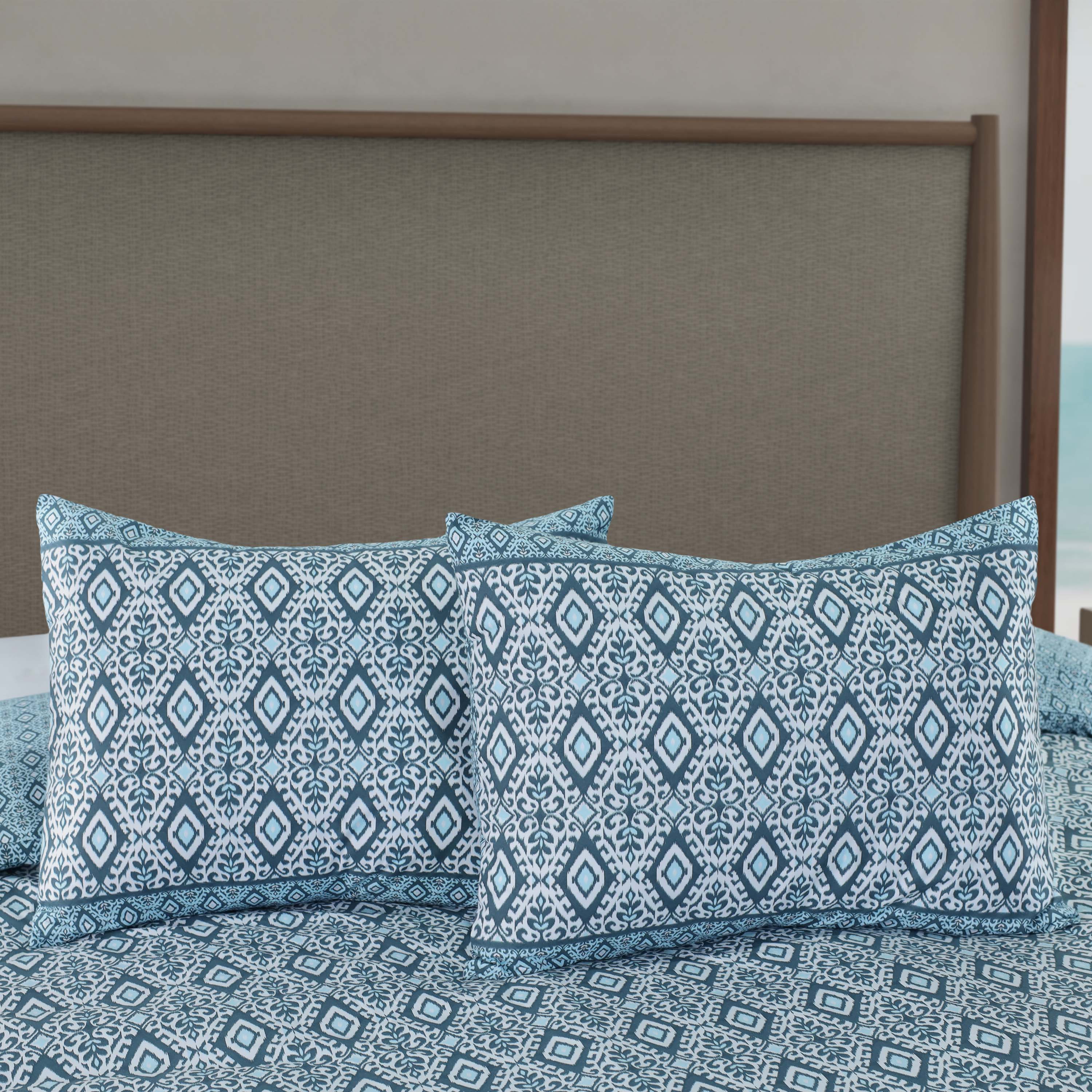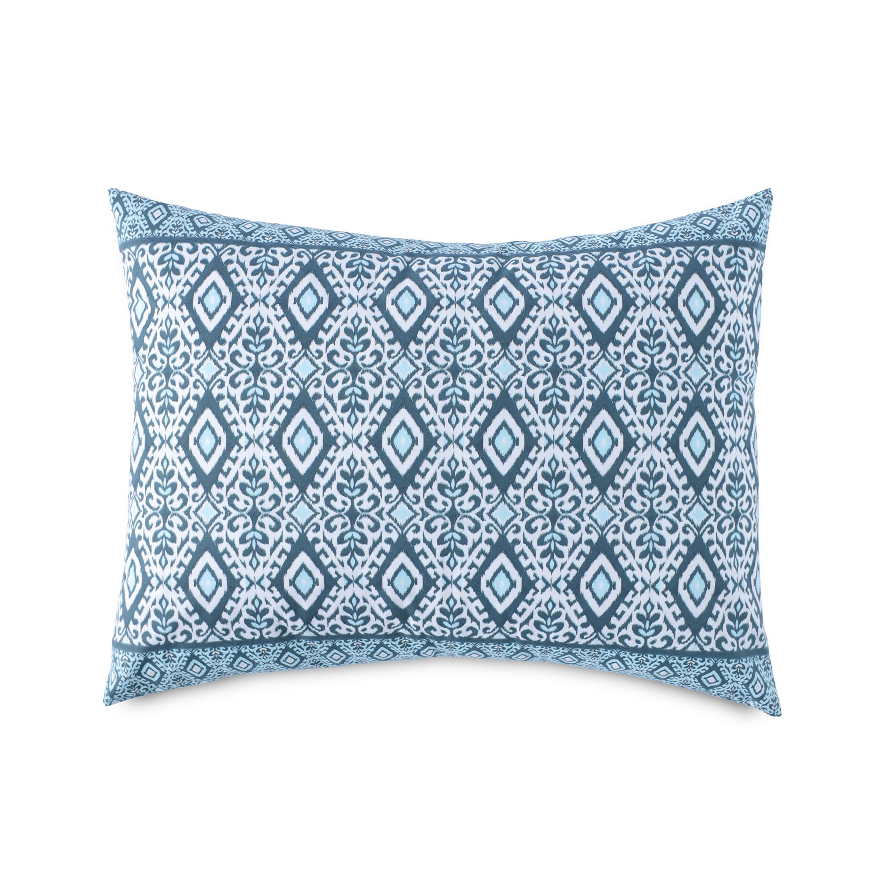 • Ikat print with complimentary ikat border print on cotton percale • Coordinates with Villa Decorative Pillow • Bottom hidden button closure • Comforter Cover Face: 100% Cotton, Fill: 100% Polyester • Pillow Sham Cover Face: 100% Cotton • Certified STANDARD 100 by OEKO-TEX® • Imported